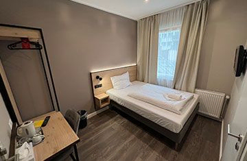 Unser Economy Einzelzimmer ist ideal für den preisbewussten Bucher. Das Zimmer bietet alles, was man für einen Kurzaufenthalt benötigt, zum kleinen Preis. Ein eigenes Bad, Klimaanlage, Schreibtisch sowie einen Wasserkocher mit Tee & Kaffee.
